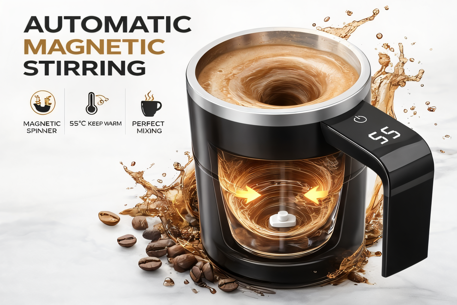 Built-in magnetic technology spins silently to mix your drink evenly no residue, no clumps.